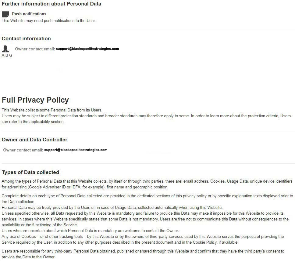 Welcome, and thank you for your interest in blackopselitestrategies.com (“website”, ”our company”, “we,” or “us”), our web site at blackopselitestrategies.com(the “website”), and all related web sites, downloadable software, mobile applications (including tablet applications), and other services provided by us and on which a link to this Privacy Policy is displayed, and all other communications with individuals though from written or oral means, such as email or phone (collectively, together with the Website, our “Services”).Your privacy is very important to us. We want to make your experience on the Internet as enjoyable and rewarding as possible, and we want you to use the internet's vast array of information, tools, and opportunities with complete confidence.IntroductionOur company collects information in different ways from and who access the various parts of our and the network of web sites accessible through our . We have created this to demonstrate our firm commitment to privacy and security. This describes how our company collects information from all end users of our Internet Services (the "Services") – those who access some of our Services but do not have accounts ("") as well as those who may purchase products and/or pay a monthly service fee to subscribe to the Service ("") – what we do with the information we collect, and the choices and have concerning the collection and use of such information. We request that you READ THIS PRIVACY POLICY CAREFULLY. Although we take appropriate measures to safeguard against unauthorized disclosures of information, we cannot assure you that personally identifiable information that we collect will never be disclosed in a manner that is inconsistent with this . What Information Do We Collect? We collect information from you when you register on our website, place an order, subscribe to our newsletter, respond to a survey or fill out a form. When ordering or registering on our website, as appropriate, you may be asked to enter your: name, e-mail address, mailing address, phone number. You may, however, visit our website anonymously. What Do We Use Your Information For? Any of the information we collect from you may be used in one of the following ways: